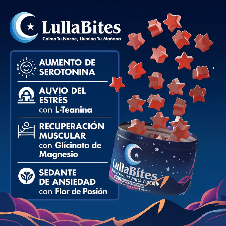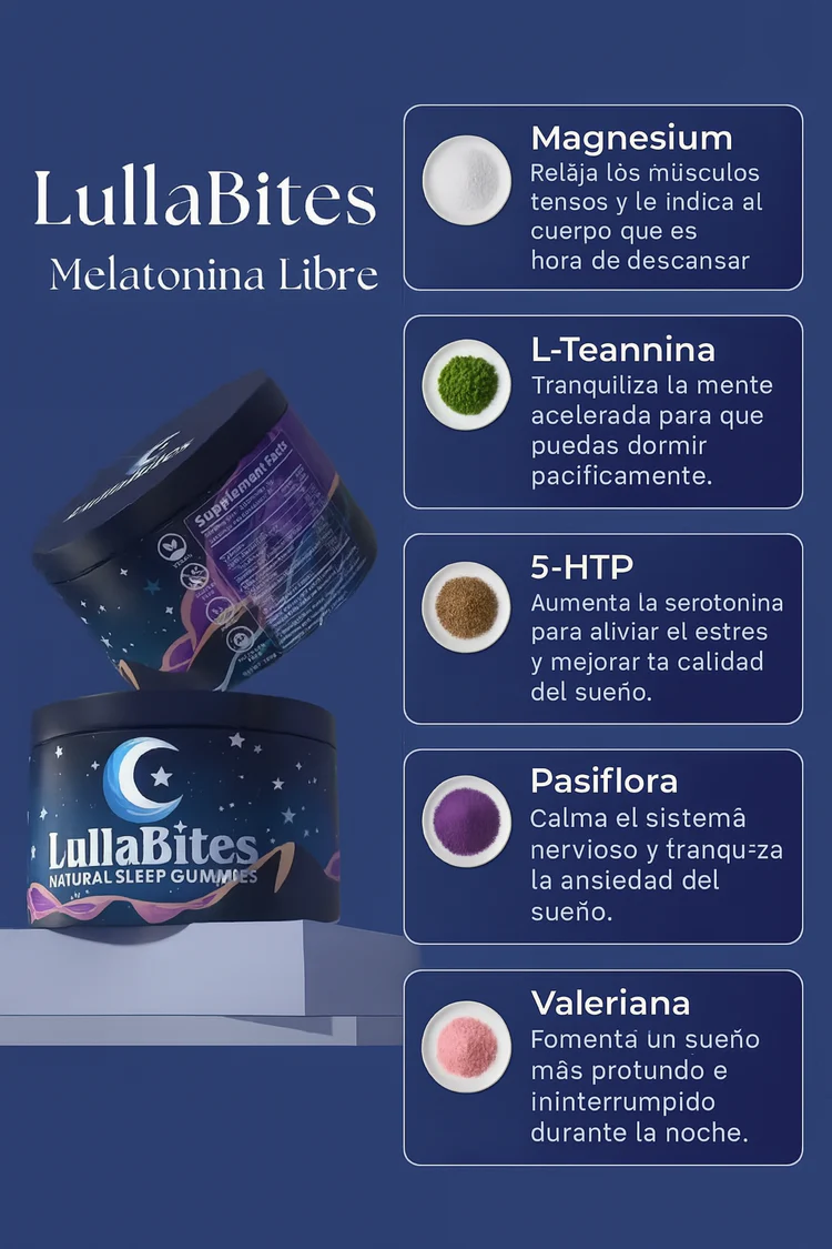Las gomitas LullaBites ayudan a conciliar el sueño más rápido, a lograr un descanso más profundo y a despertarse renovado y sin aturdimiento.